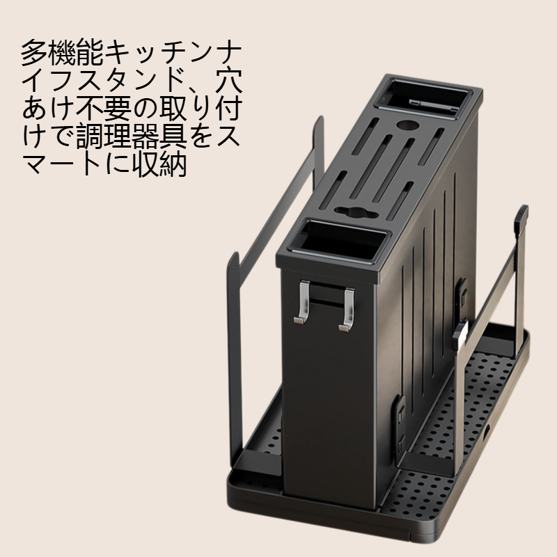 キッチンカッター、箸、まな板を一体で収納できる便利な棚。省スペース設計で整理整頓が簡単。取り出しやすく、キッチン作業が効率的に進みます。